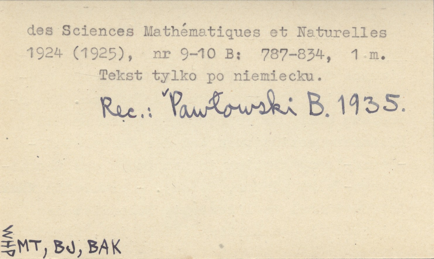 Bulletin International de l'Académie Polonaise des Sciences et des Lettres, Classe des Sciences Mathématiques et Naturelles (Cracovie) , 1924 (1925), nr 9-10 B: 787-834, 1 m. Tekst tylko po niemiecku. REC: PAWŁOWSKI B. 1935