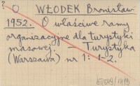 WŁODEK Bronisław 1952 O właściwe ramy organizacyjne dla turystyki masowej.
