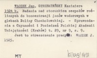 WŁODEK Jan STRZEMIEŃSKI, K. ; 1926 a Stężenie jonów wodorowych w glebach Doliny Chochołowskiej, a zespoły roślinne.