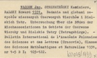 WŁODEK Jan STRZEMIEŃSKI, Kazimierz. ; RALSKI, Edward. ; 1931 Badania nad glebami zespołów mieszanych Czerwonych Wierchów i Bielskich Tatr. Untersuchung über die Böden der Mischassoziationen im Gebiete der Czerwone Wierchy und Bielskie Tatry (Tatragebirge).