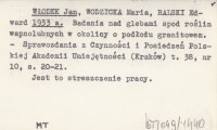WŁODEK Jan WODZICKA, Maria. ; RALSKI Edward. ; 1933 a Badania nad glebami spod roślin wapnolubnych w okolicy o podłożu granitowem.