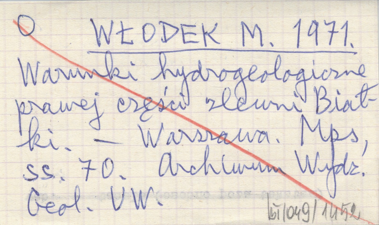 WŁODEK M. 1971 Warunki hydrogeologiczne prawej części zlewni Białki.