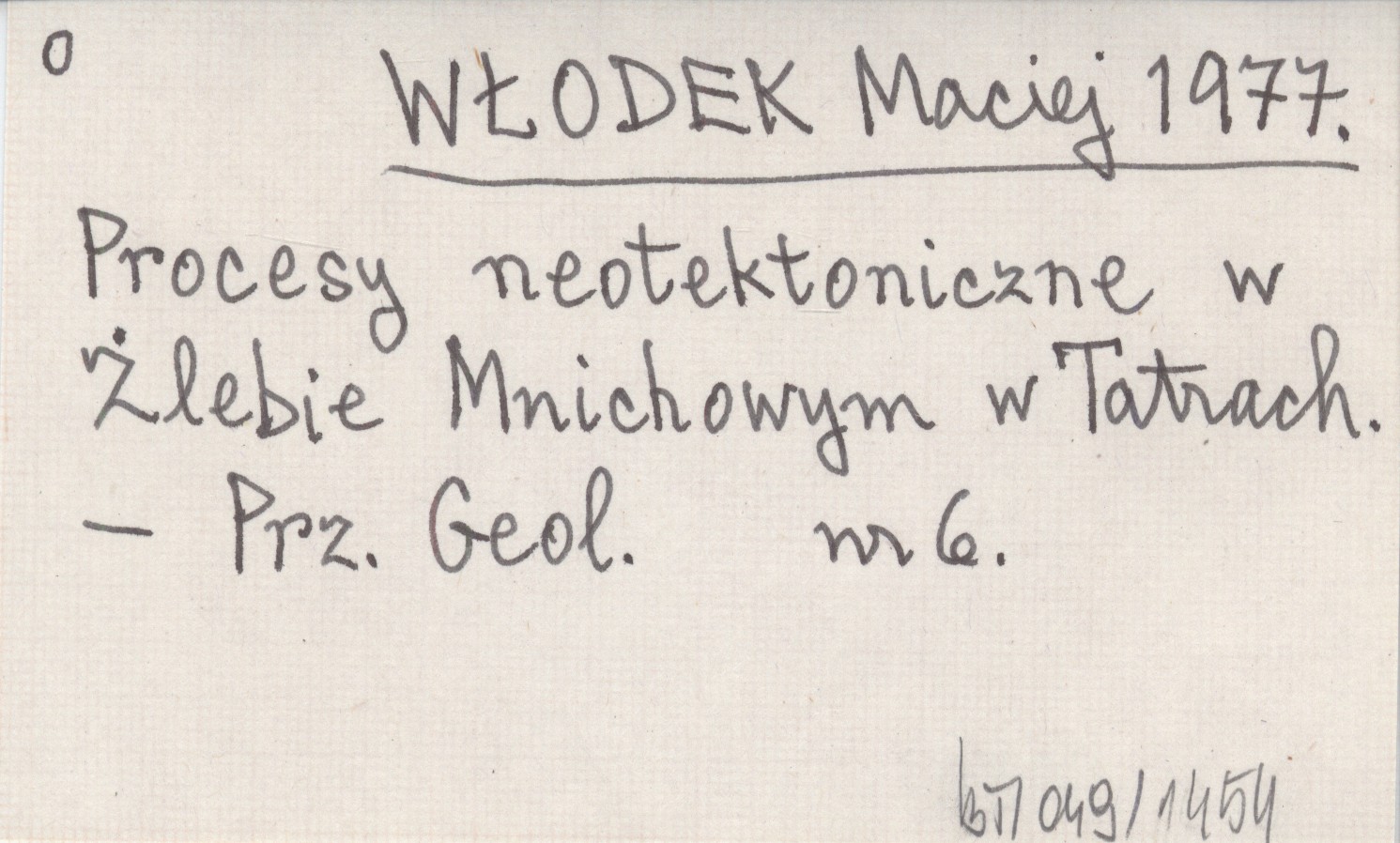 WŁODEK Maciej 1977 Procesy neotektoniczne w Żlebie Mnichowym w Tatrach.