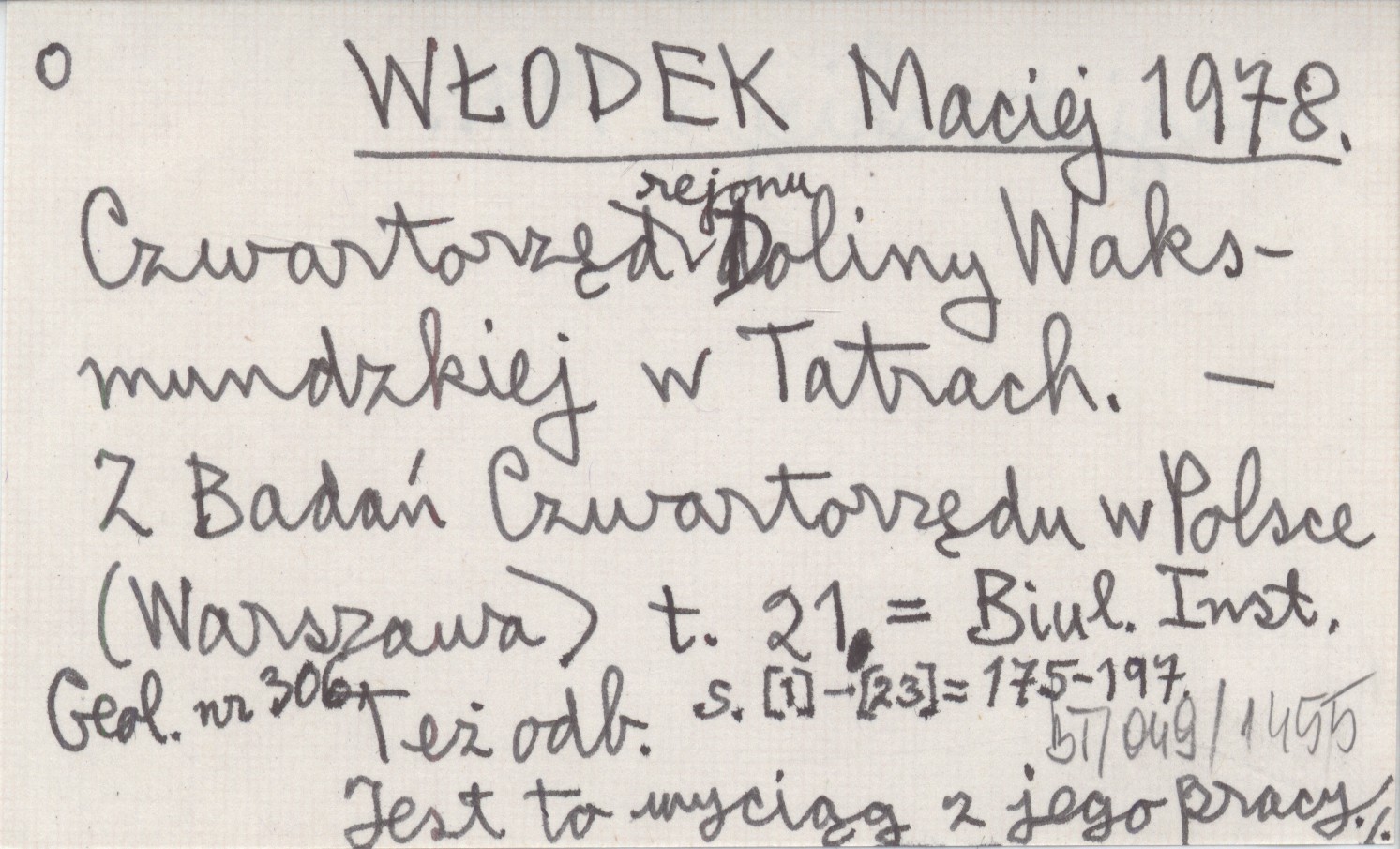 WŁODEK Maciej 1978 Czwartorzęd rejonu Doliny Waksmundzkiej w Tatrach.