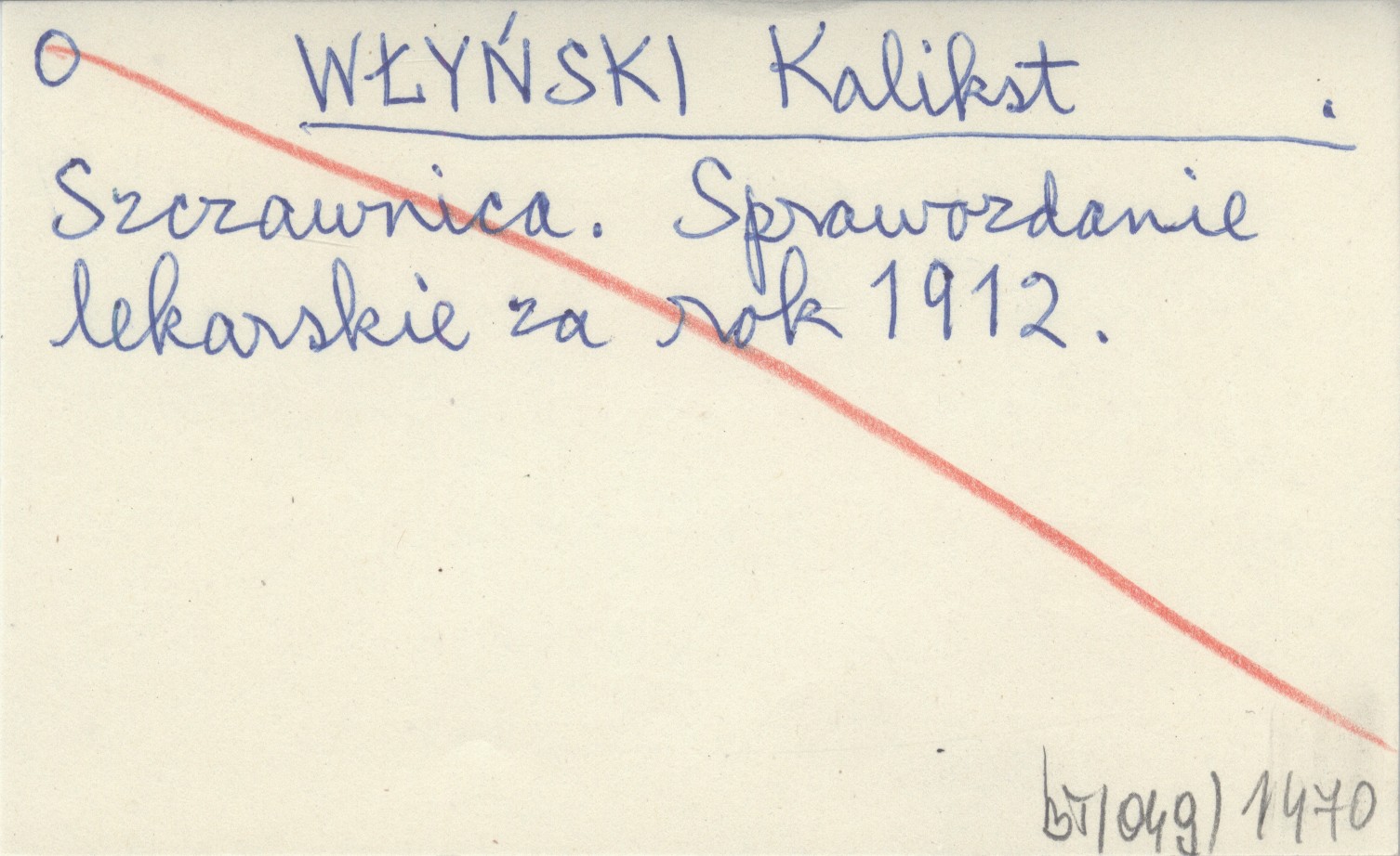 WŁYŃSKI Kalikst Szczawnica. Sprawozdanie lekarskie za rok 1912.