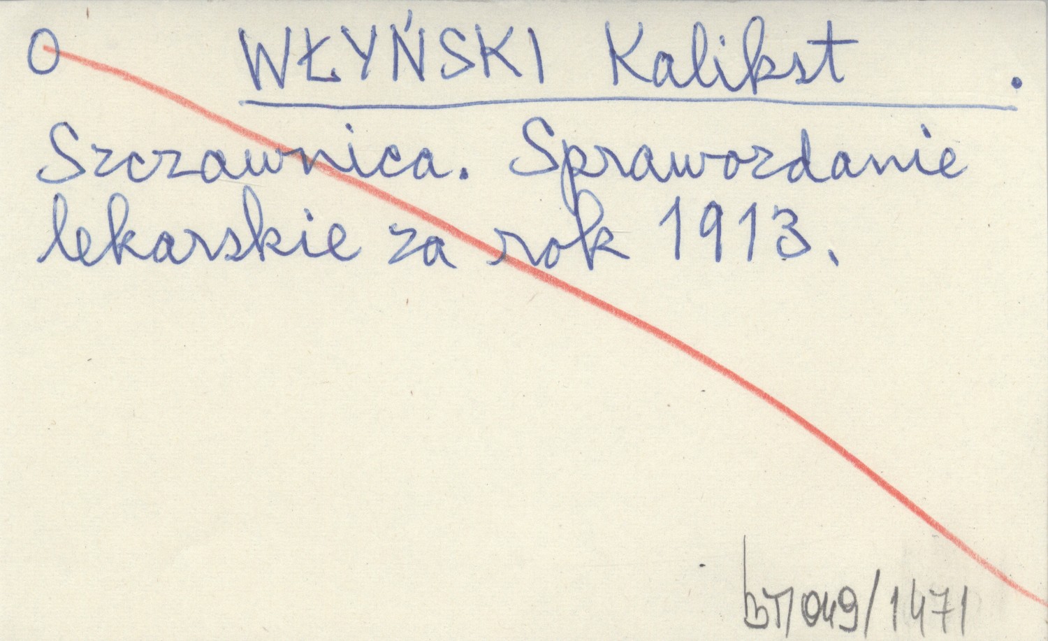 WŁYŃSKI Kalikst Szczawnica. Sprawozdanie lekarskie za rok 1913.