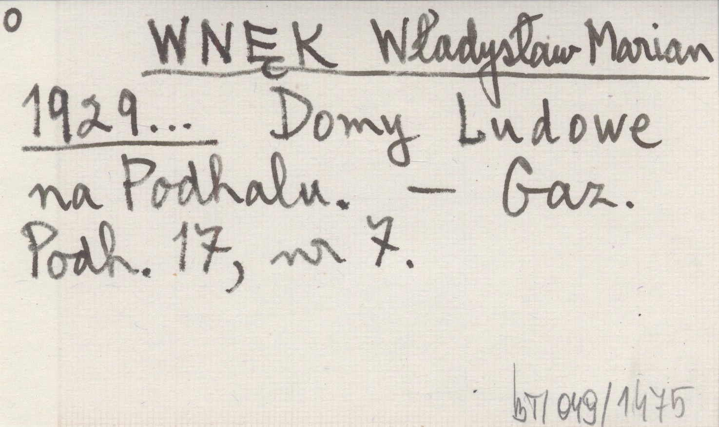 WNĘK Władysław Marian 1929... Domy Ludowe na Podhalu.
