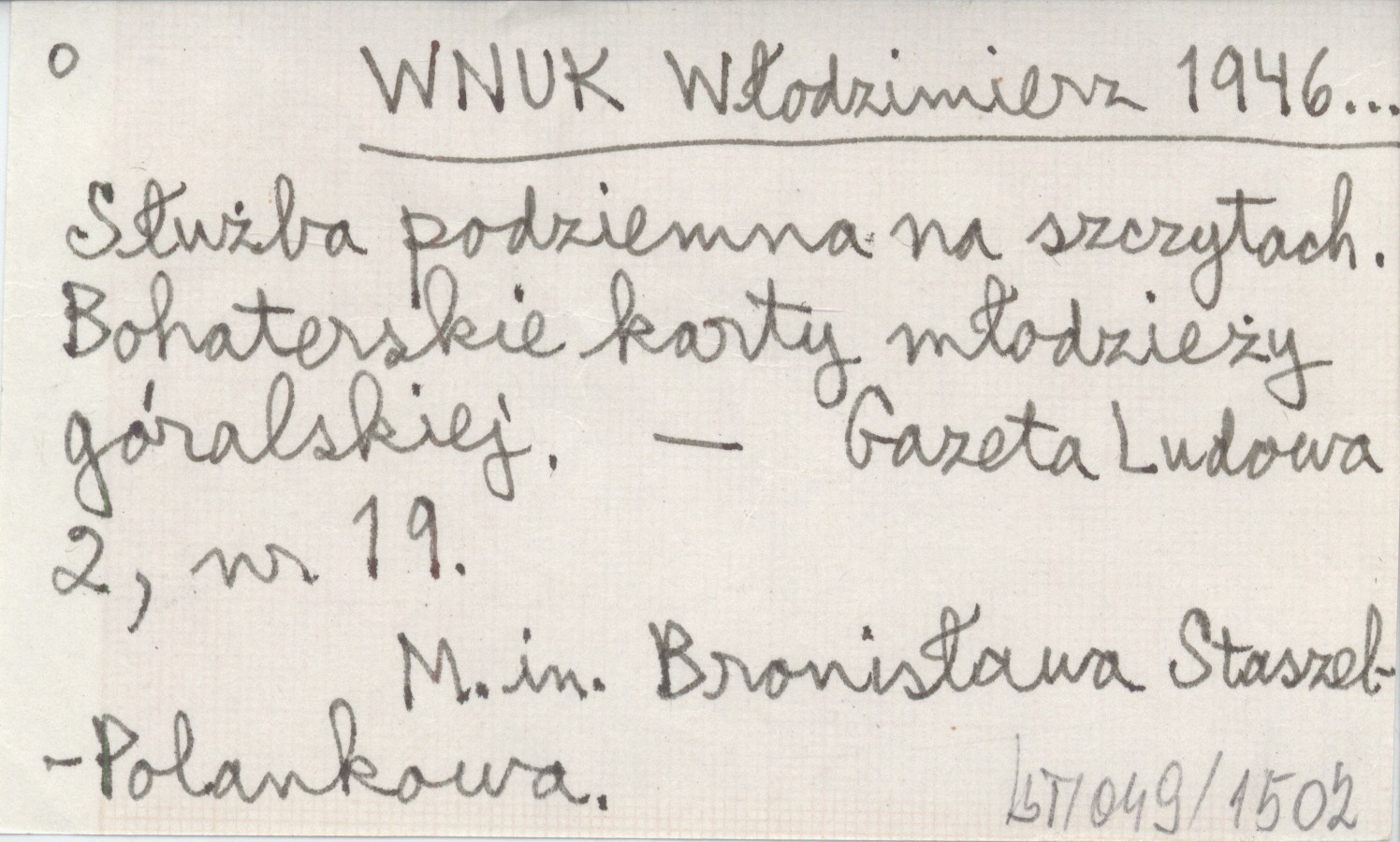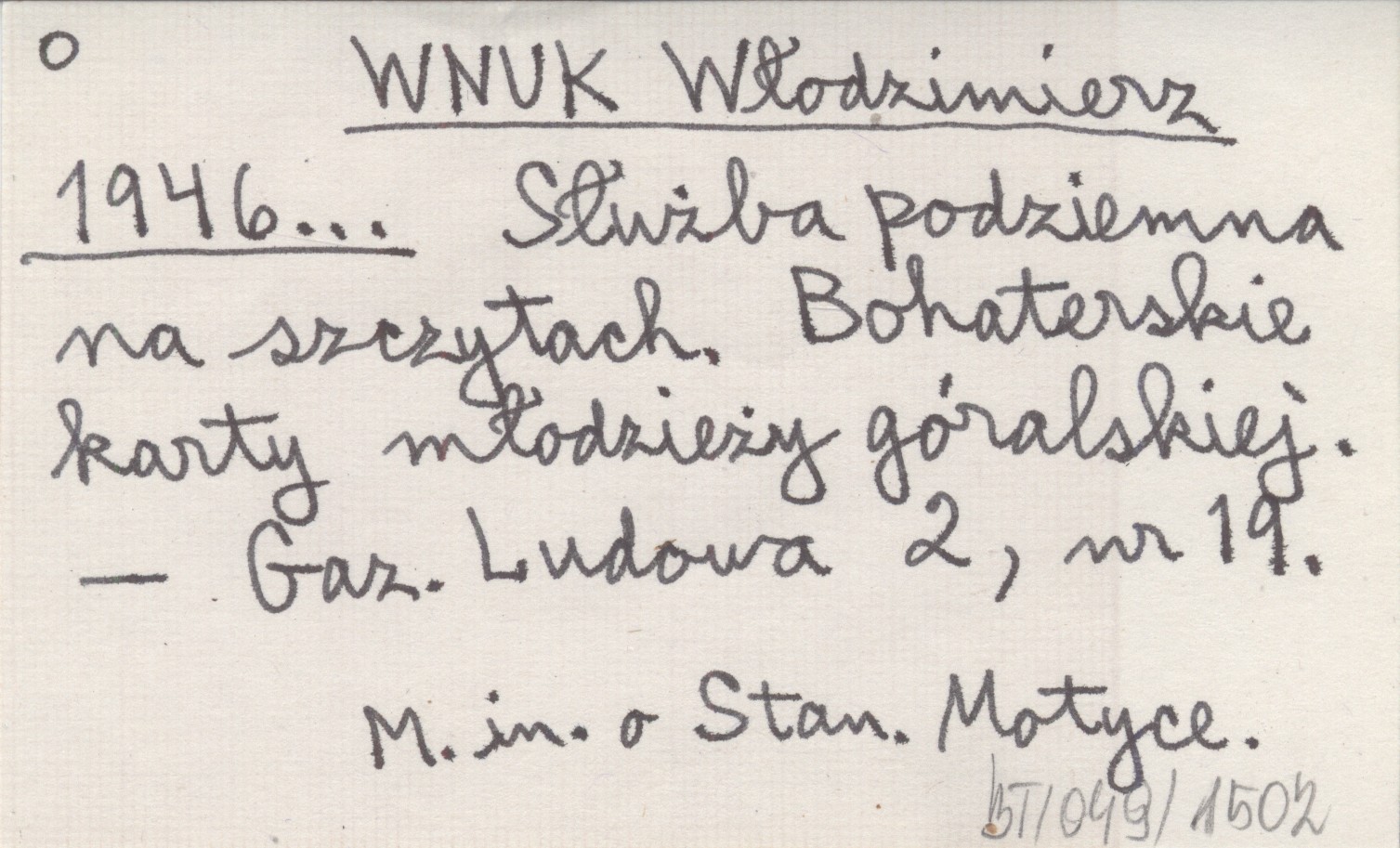 WNUK Włodzimierz 1946... Służba podziemna na szczytach. Bohaterskie karty młodzieży góralskiej.