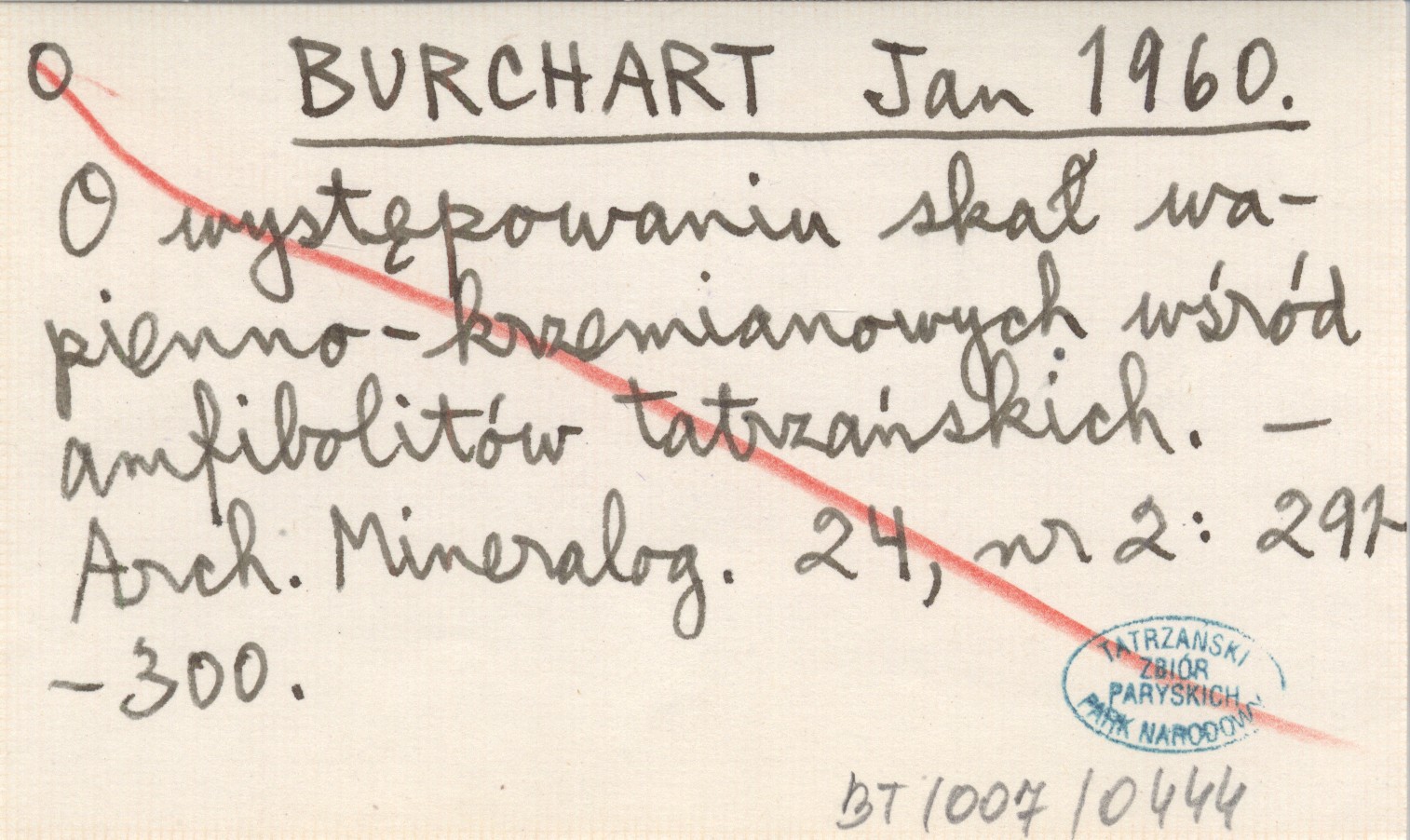 BURCHART Jan 1960 O występowaniu skał wapienno-krzemianowych wśród amfibolitów tatrzańskich.