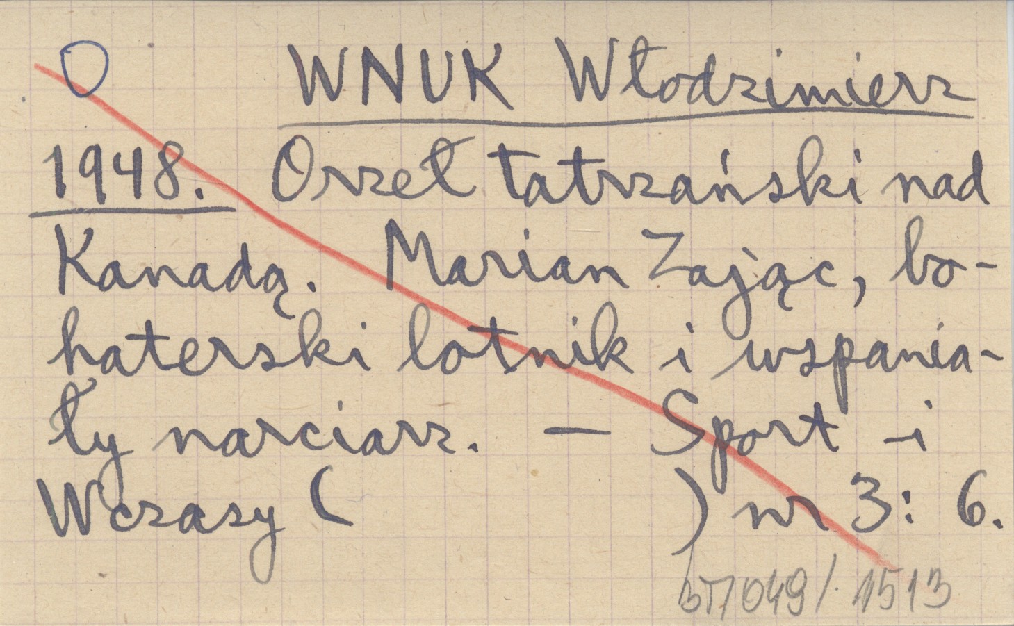 WNUK Włodzimierz 1948 Orzeł tatrzański nad Kanadą. Marian Zając, bohaterski lotnik i wspaniały narciarz.
