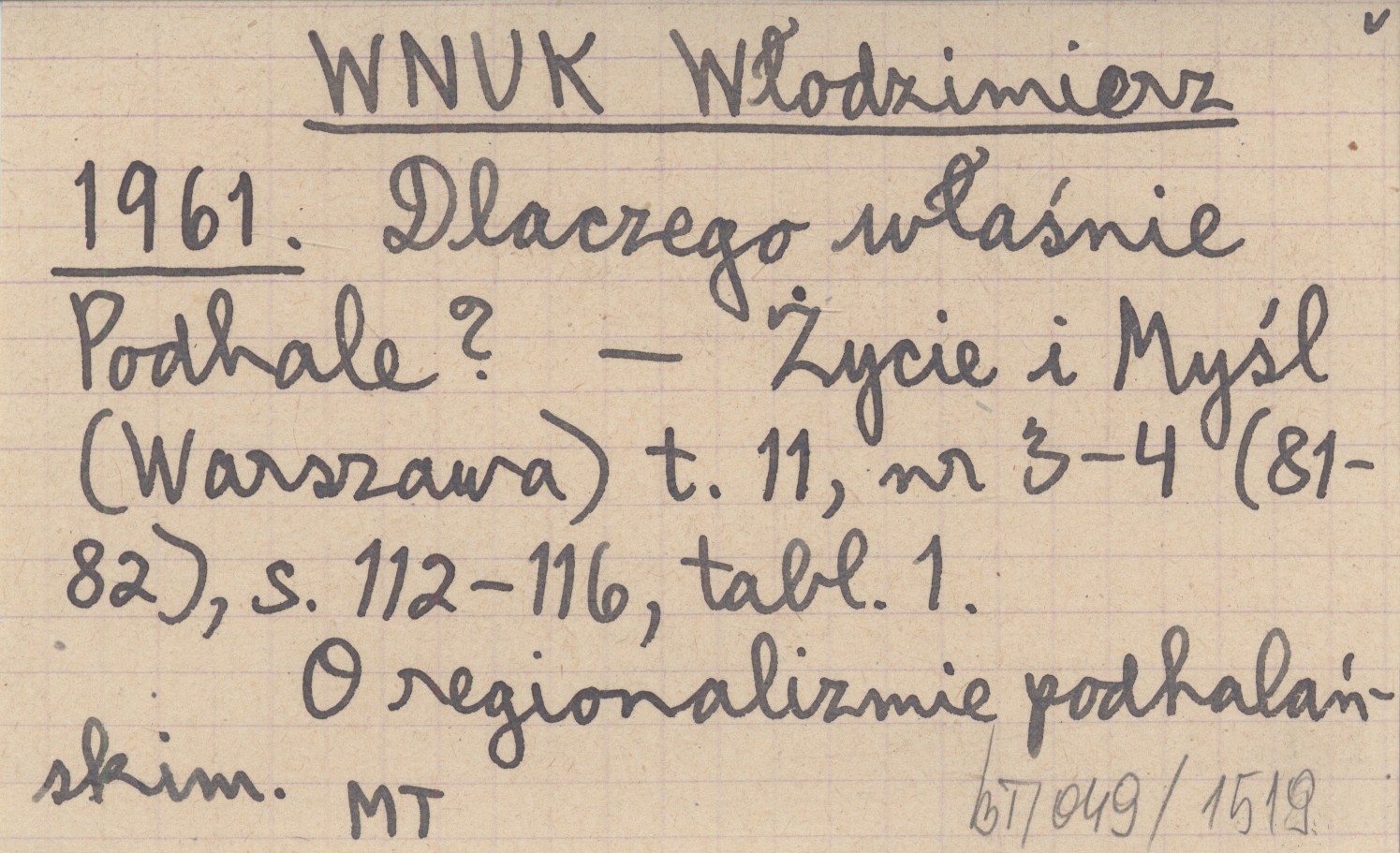 Życie i Myśl (Warszawa) , T. 11, nr 3-4 (81-82): 112-116, 1 k. tabl. O regionalizmie podhalańskim.