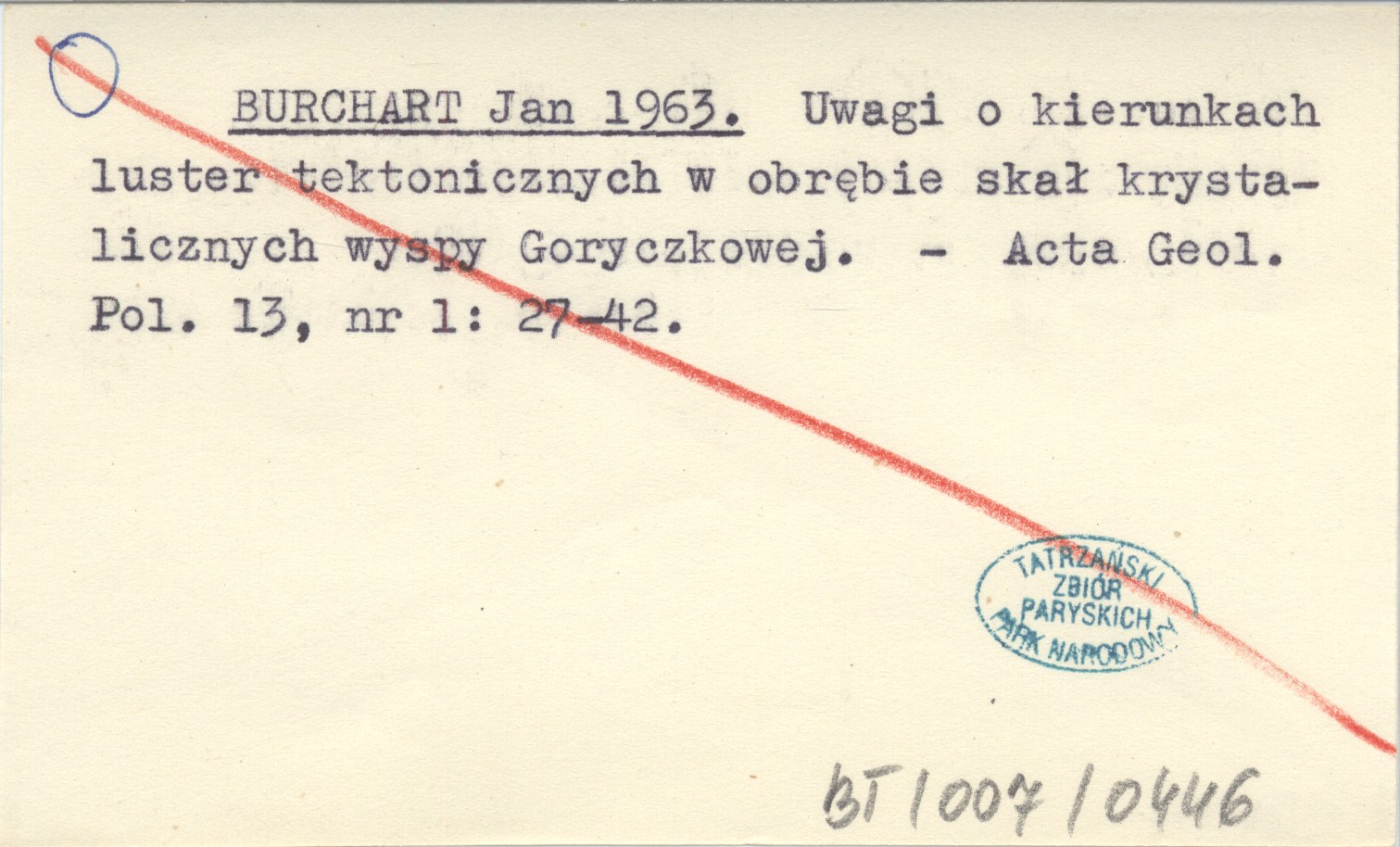 BURCHART Jan 1963 Uwagi o kierunkach luster tektonicznych w obrębie skał krystalicznych wyspy Goryczkowej.