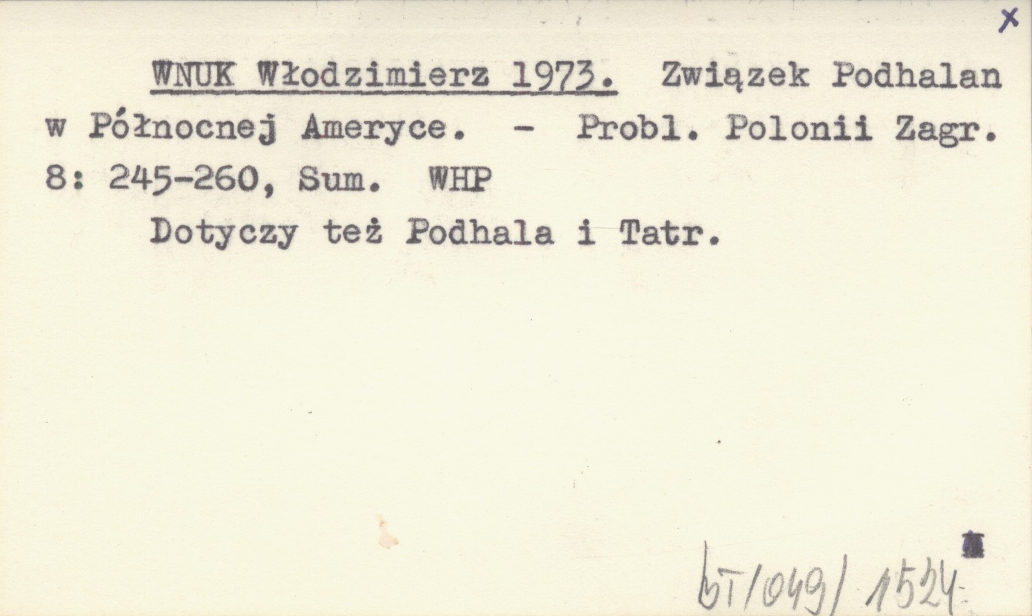 WNUK Włodzimierz 1973 Związek Podhalan w Północnej Ameryce.