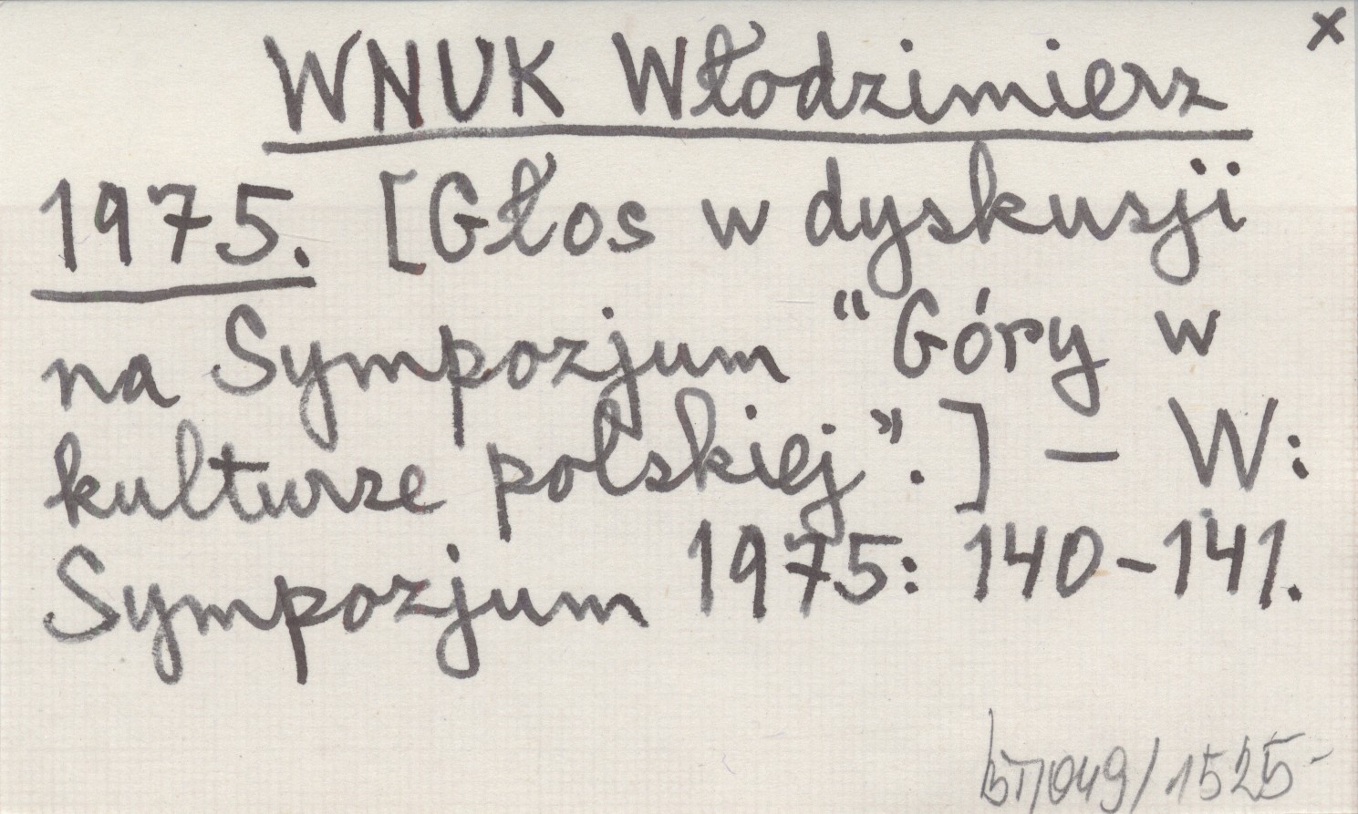WNUK Włodzimierz 1975 [Głos w dyskusji na Sympozjum "Góry w kulturze polskiej"].