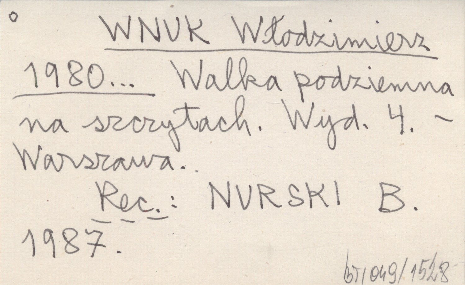WNUK Włodzimierz 1980... Walka podziemna na szczytach.