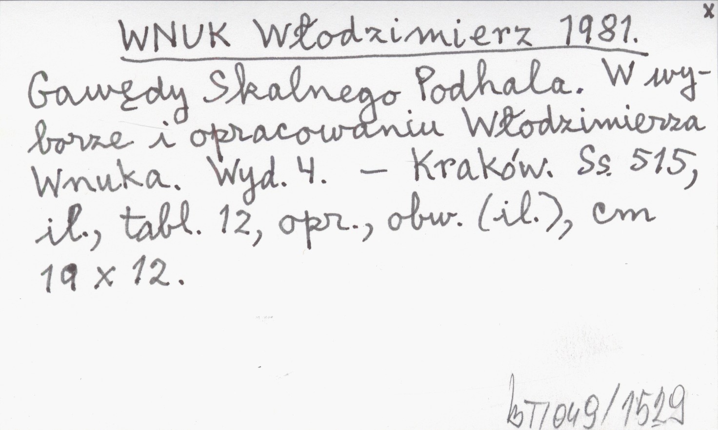 WNUK Włodzimierz 1981 Gawędy Skalnego Podhala. W wyborze i opracowaniu Włodzimierza Wnuka.