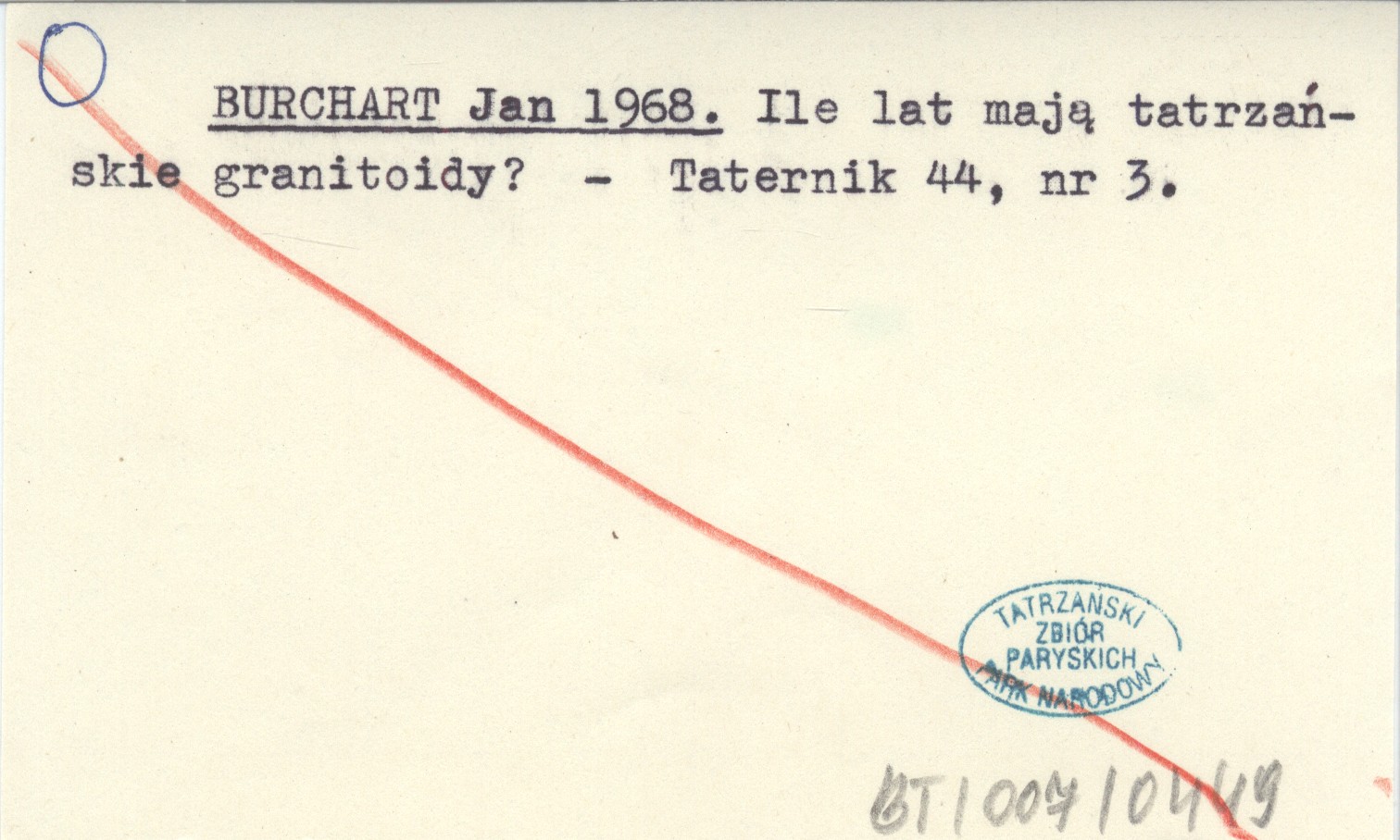 BURCHART Jan 1968 Ile lat mają tatrzańskie granitoidy?