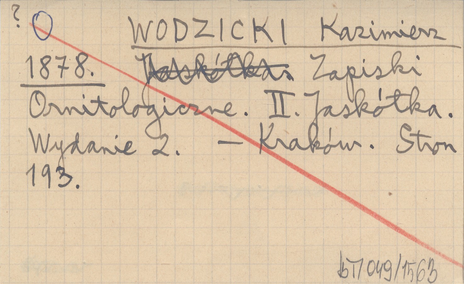 WODZICKI Kazimierz 1878 Zapiski Ornitologiczne. II. Jaskółka.