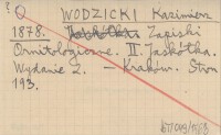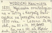 WODZICKI K. 1850 Systematyczny spis ptaków uważanych w w dawnej ziemi krakowskiej.