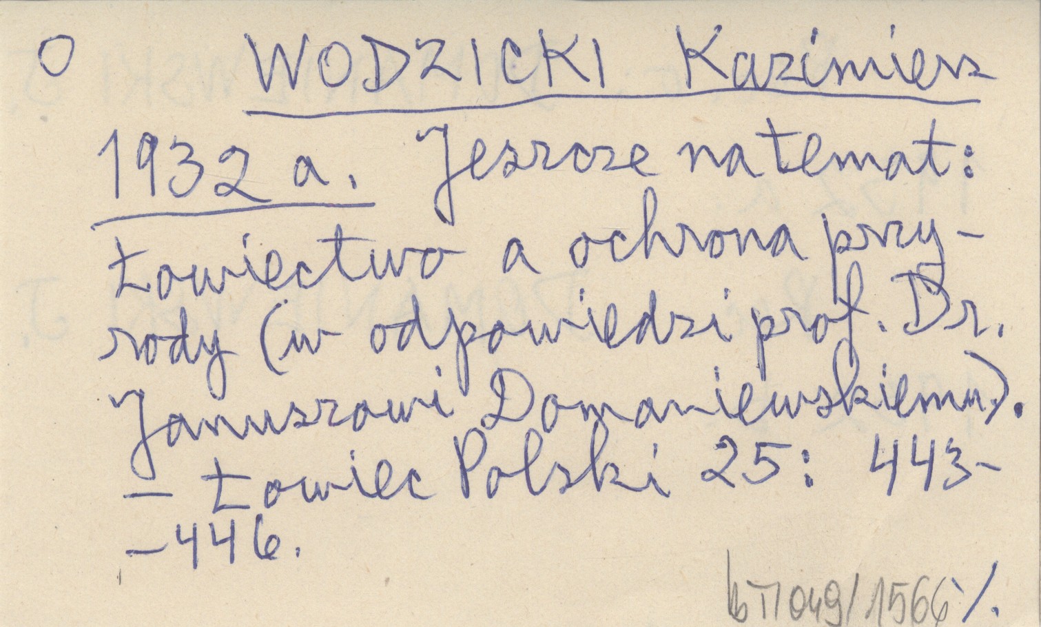 WODZICKI Kazimierz 1932 a Jeszcze na temat: Łowiectwo a ochrona przyrody (w odpowiedzi prof. Dr. Januszowi Domaniewskiemu).