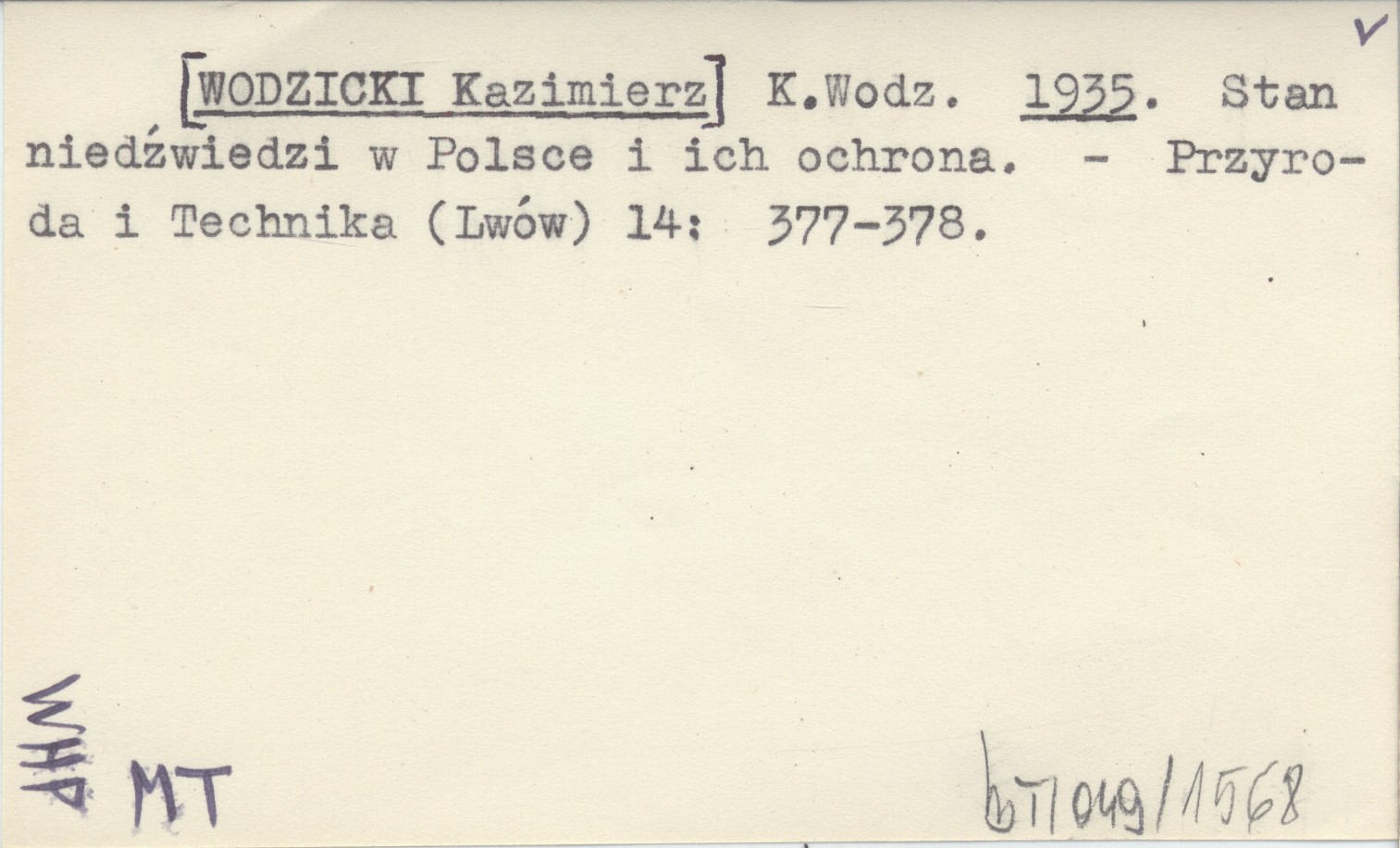 K.Wodz. [WODZICKI Kazimierz] 1935 Stan niedźwiedzi w Polsce i ich ochrona.