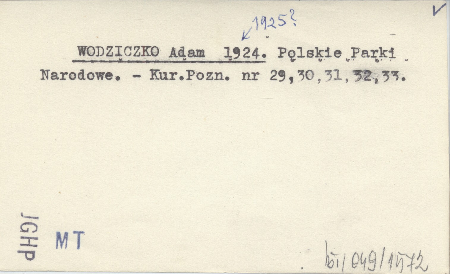 WODZICZKO Adam 1924 (1925?) Polskie Parki Narodowe.