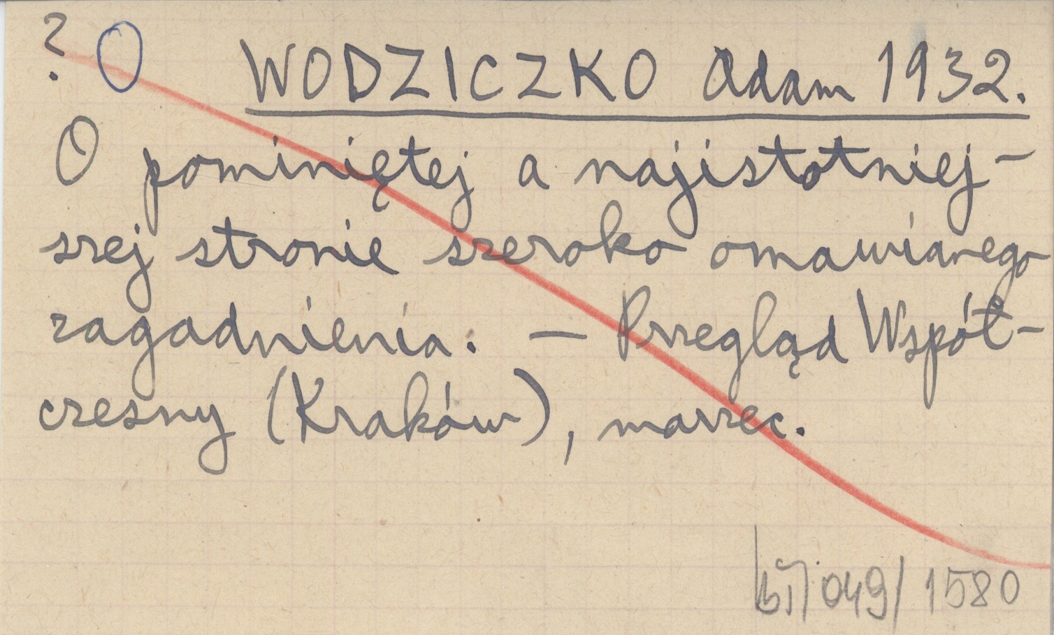 WODZICZKO Adam 1932 O pominiętej a najistotniejszej stronie szeroko omawianego zagadnienia.