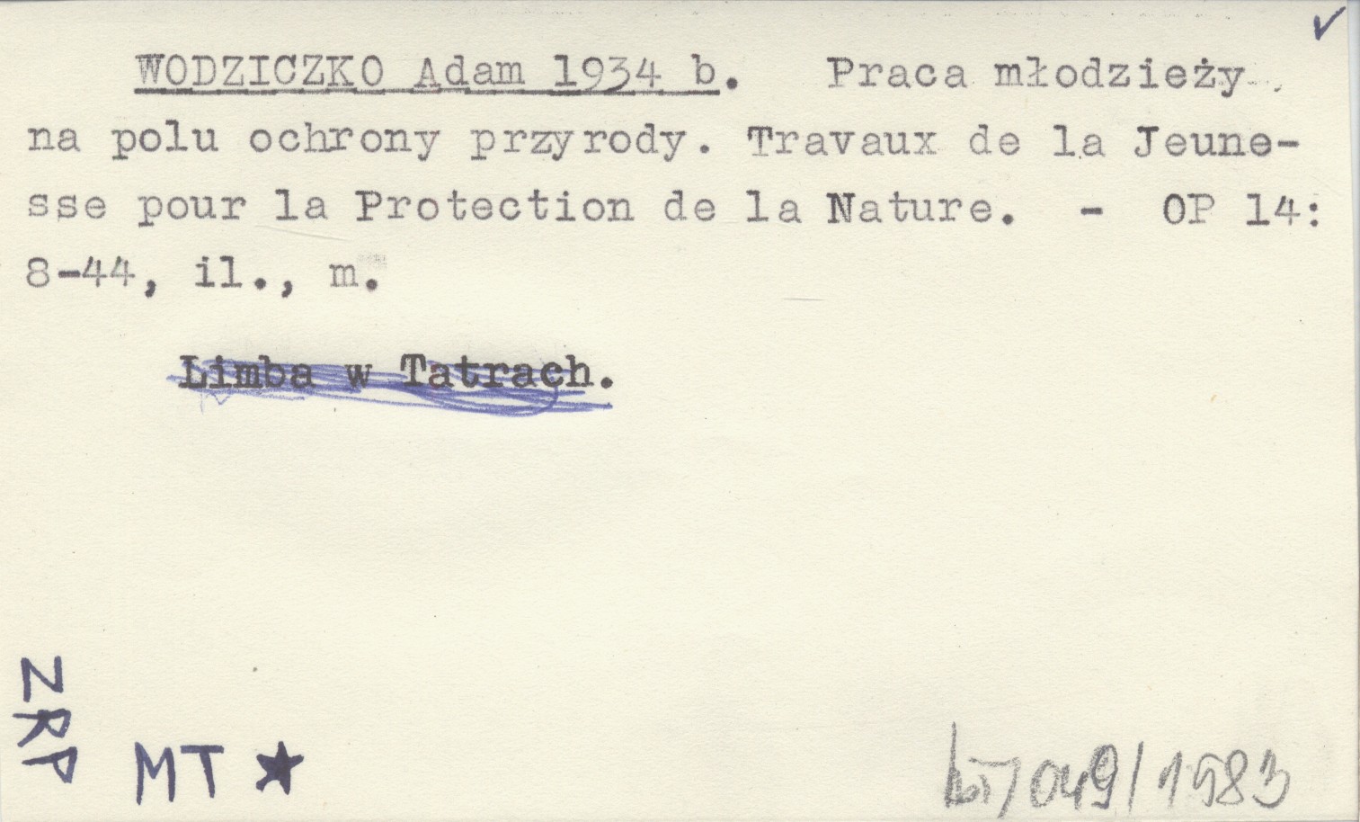WODZICZKO Adam 1934 b Praca młodzieży na polu ochrony przyrody. Travaux de la Jeunesse pour la Protection de la Nature.