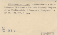 WODZICZKO A. 1931 Sprawozdanie z działalności Okręgowego Komitetu Ochrony Przyrody na Wielkopolskę i Pomorze w Poznaniu.