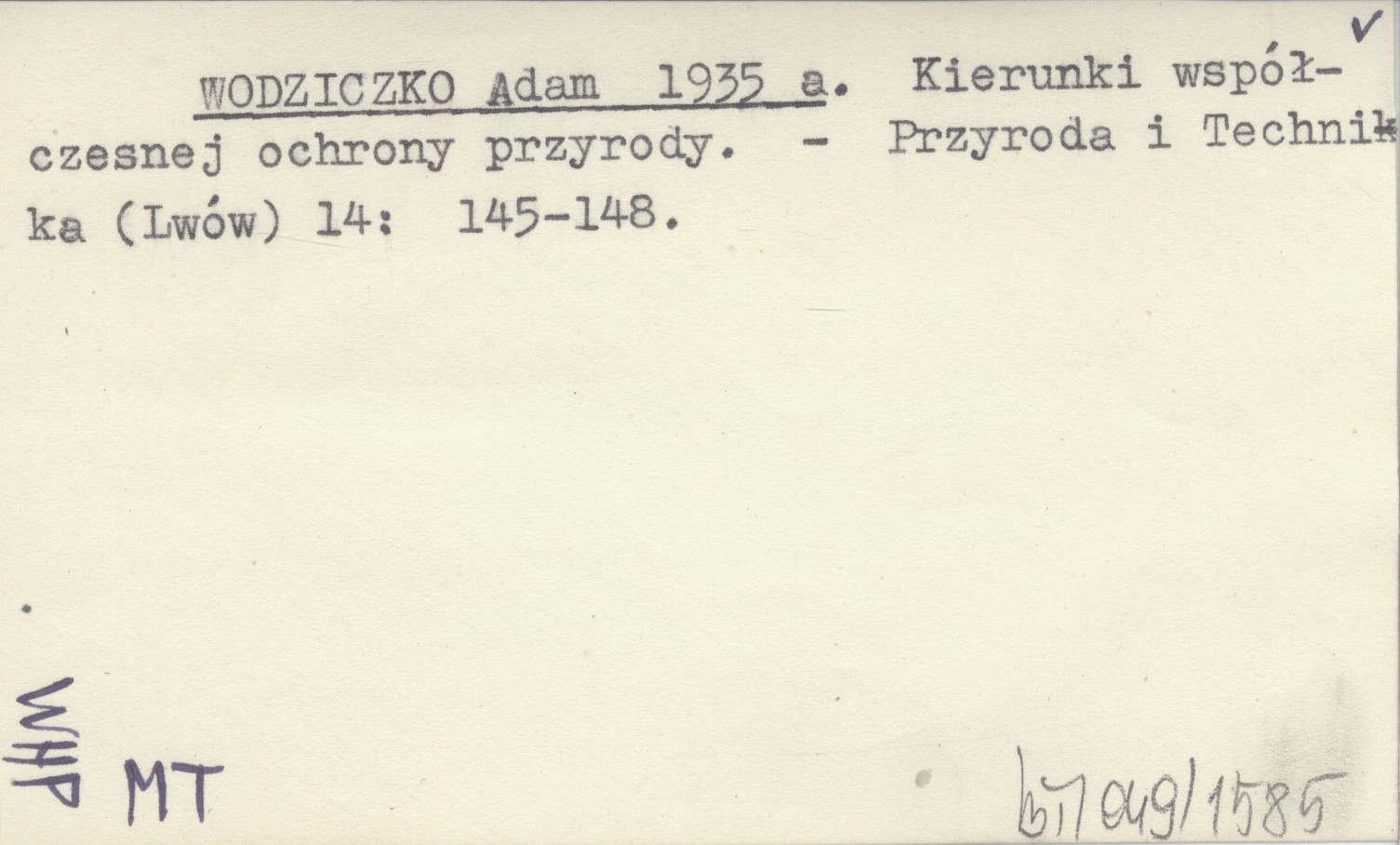 WODZICZKO Adam 1935 a Kierunki współczesnej ochrony przyrody.