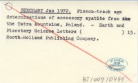 BURCHART Jan 1972 Fisson-track age determinations of accessory apatite from the Tatra Mountains, Poland.