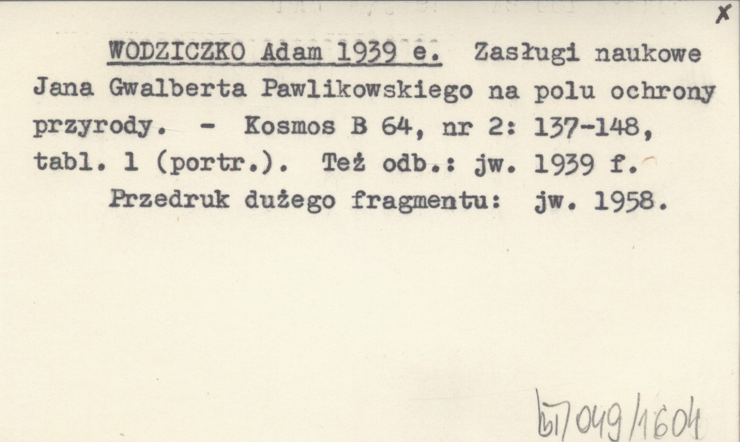 WODZICZKO Adam 1939 e Zasługi naukowe Jana Gwalberta Pawlikowskiego na polu ochrony przyrody.