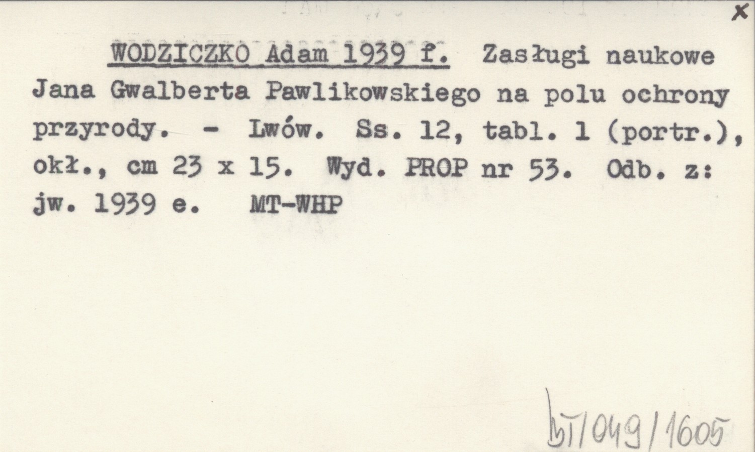 WODZICZKO Adam 1939 f Zasługi naukowe Jana Gwalberta Pawlikowskiego na polu ochrony przyrody.