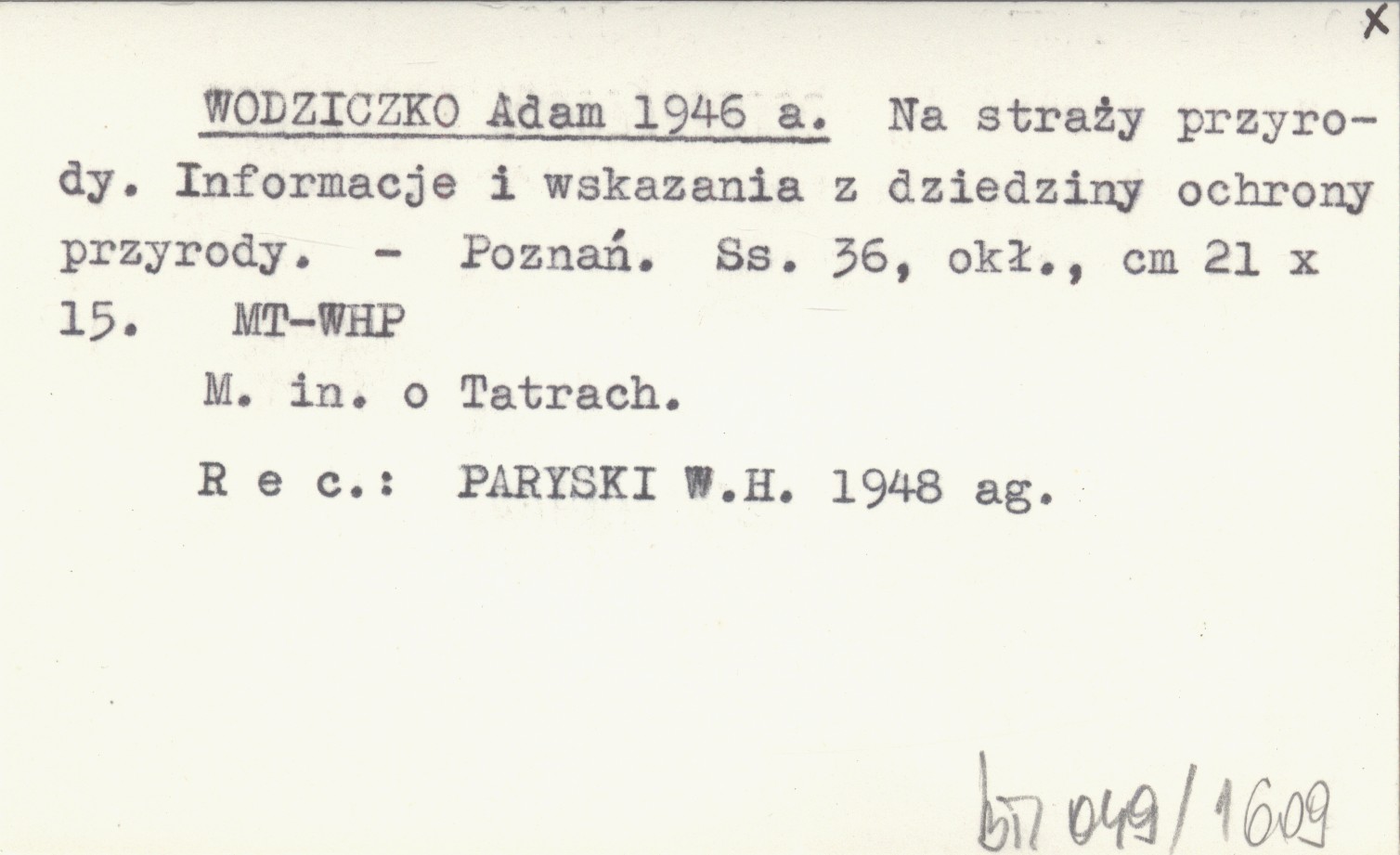 WODZICZKO Adam 1946 a Na straży przyrody. Informacje i wskazania z dziedziny ochrony przyrody.