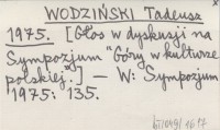 WODZIŃSKI Tadeusz 1975 [Głos w dyskusji na Sympozjum "Góry w kulturze polskiej"].