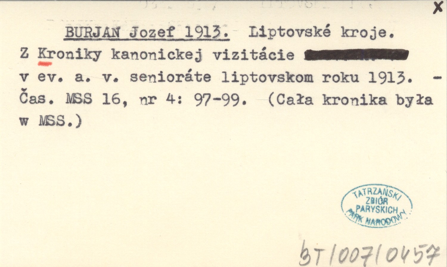 BURJAN Jozef 1913 Liptovské kroje. Z Kroniky kanonickej vizitácie v ev. a. v. senioráte liptovskom roku 1913.