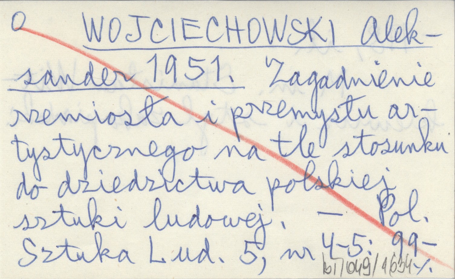 WOJCIECHOWSKI Aleksander 1951 Zagadnienie rzemiosła i przemysłu artystycznego na tle stosunku do dziedzictwa polskiej sztuki ludowej.