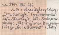 Tygodnik Ilustrowany, Ser. 2, t. 15, nr 372: 108 ; nr 373: 121-122 ; nr 374: 141 ; nr 375: 151 ; nr 376: 166 ; nr 377: 185-186. S. 141: obraz Dylczyńskiego "Druciarzyki" (wg recenzenta są to Słowacy); 166: Świeszewskiego "Pieniny" oraz Brzozowskiego "Góra Giewont" i "Tatry".