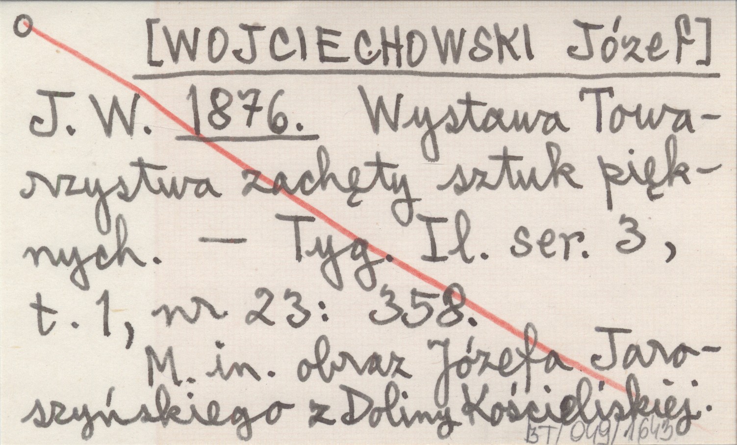 J. W. [WOJCIECHOWSKI Józef] 1876 Wystawa Towarzystwa zachęty sztuk pięknych.