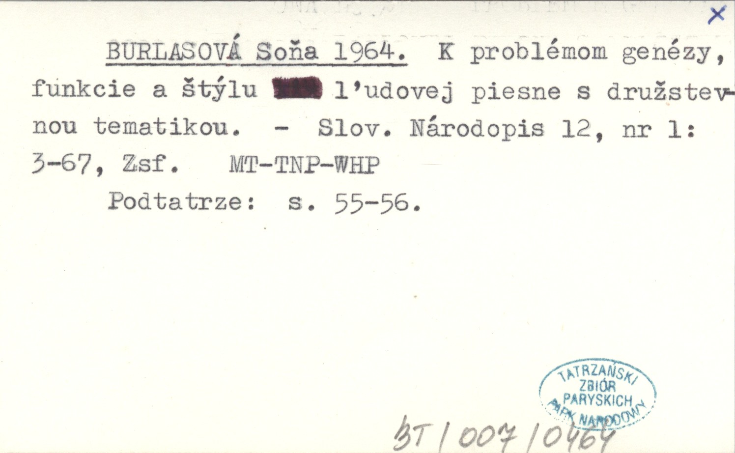 BURLASOVÁ Soňa 1964 K problémom genézy funkcie a štýlu ľudovej piesne s družstvenou tematikou.