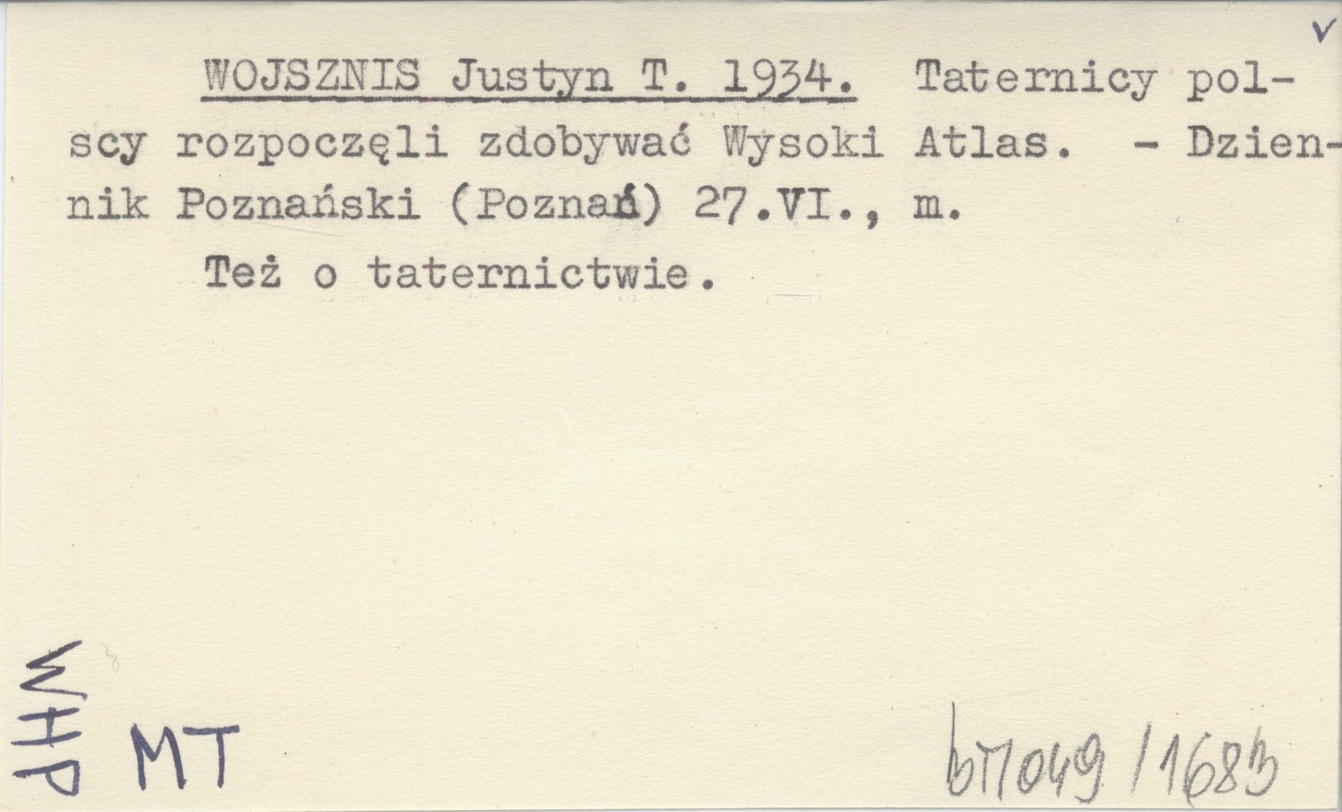 WOJSZNIS Justyn T. 1934 Taternicy polscy rozpoczęli zdobywać Wysoki Atlas.