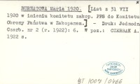 BURNATOWA Maria 1920 [List z 31 VII 1920 w imieniu komitetu zakop. PPS do Komitetu Obrony Państwa w Zakopanem.]