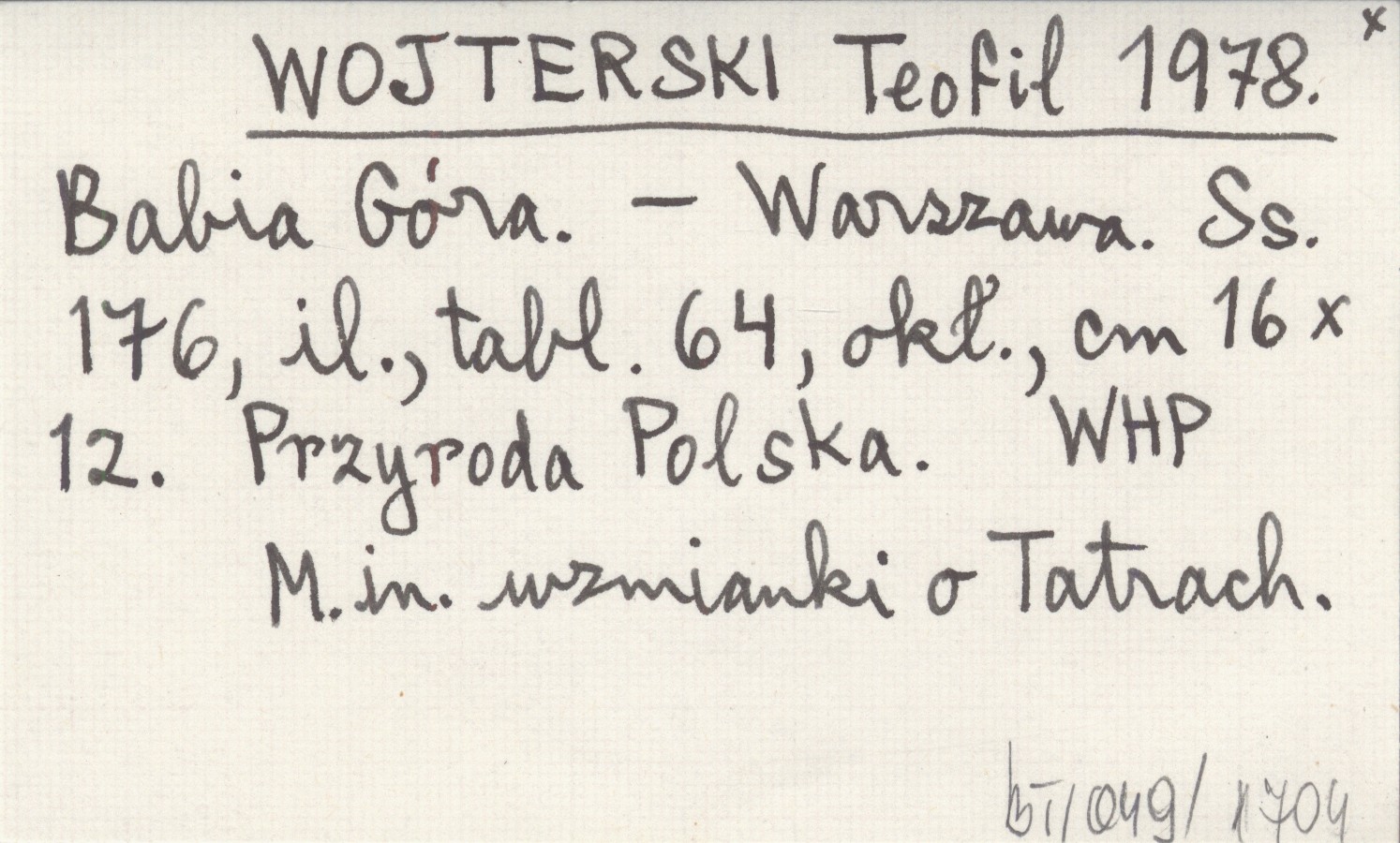 Warszawa , 176 s., il., 64 k. tabl., okł., 16x12 cm. Przyroda Polska. M.in. wzmianki o Tatrach.