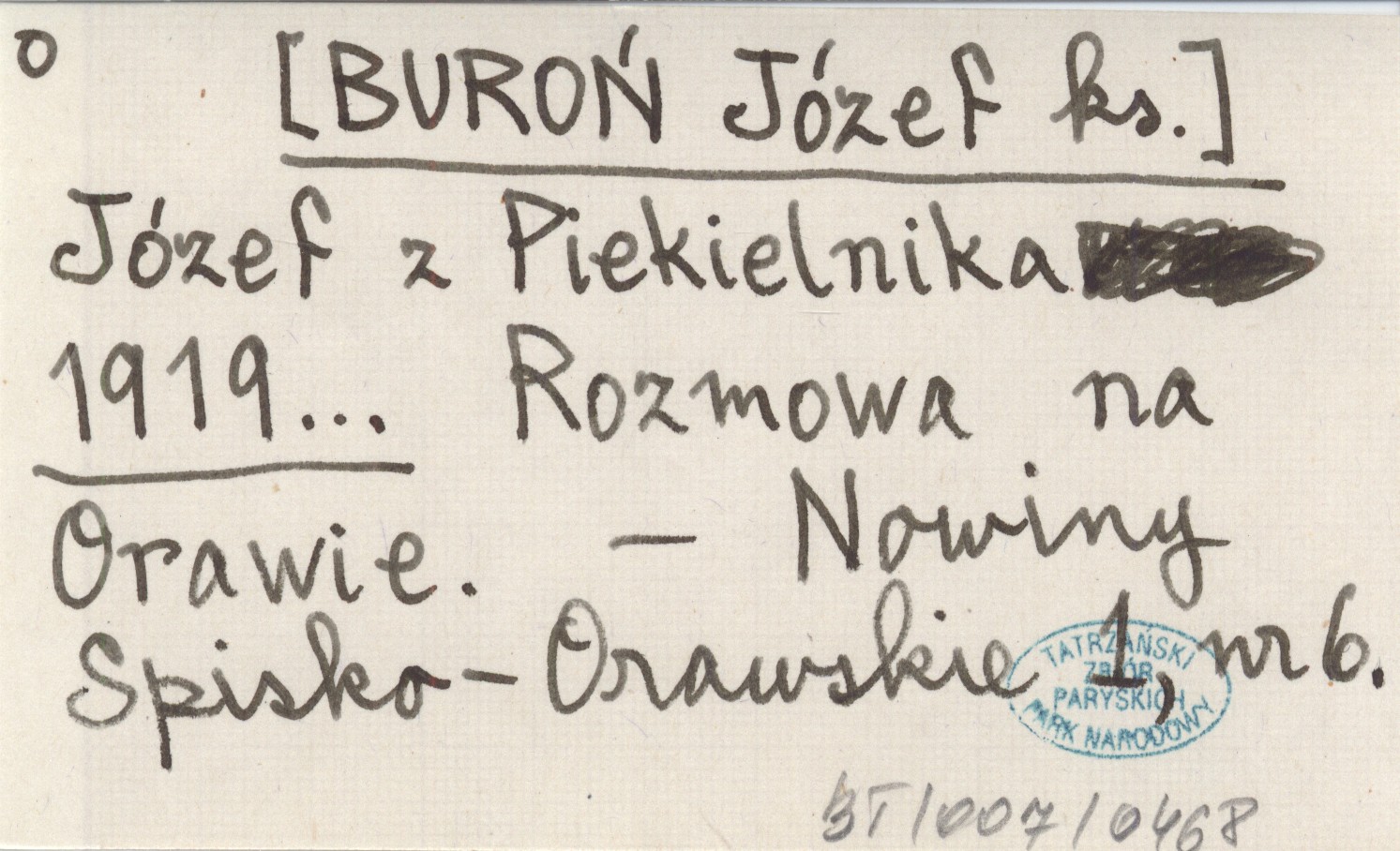 Józef z Piekielnika [BUROŃ Józef ks.] 1919... Rozmowa na Orawie.