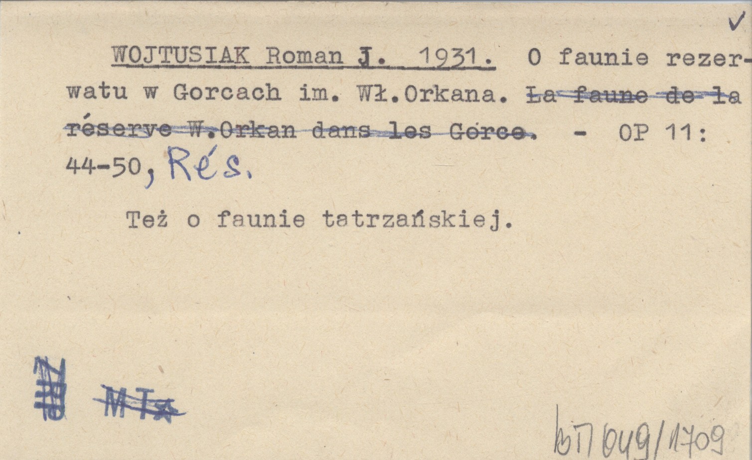 Ochrona Przyrody, 11: 44-50, Rés. Też o faunie tatrzańskiej.