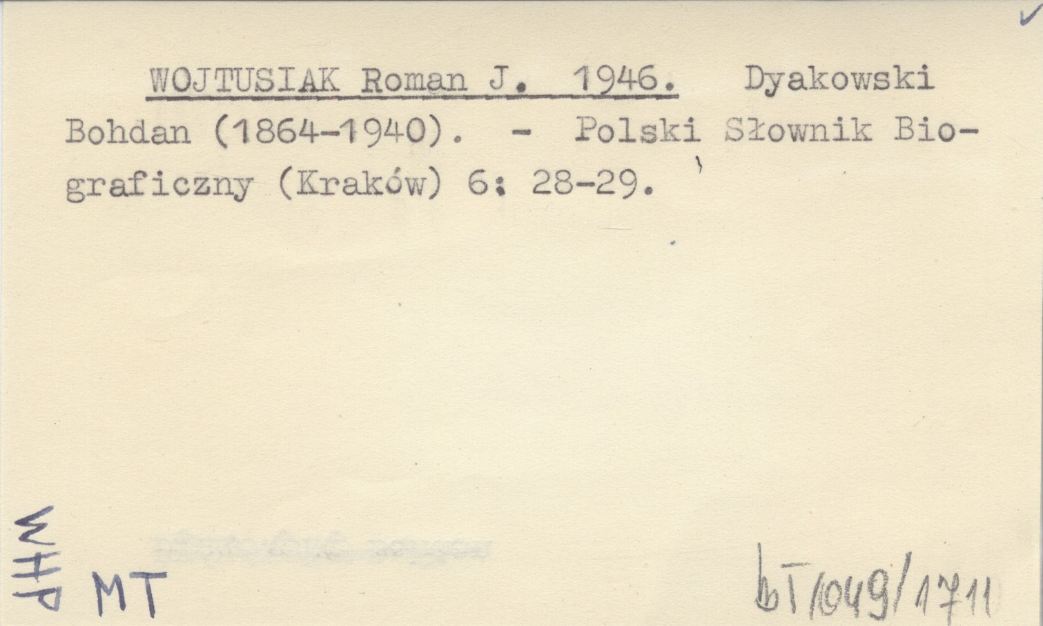 WOJTUSIAK Roman J. 1946 Dyakowski Bohdan (1864-1940).