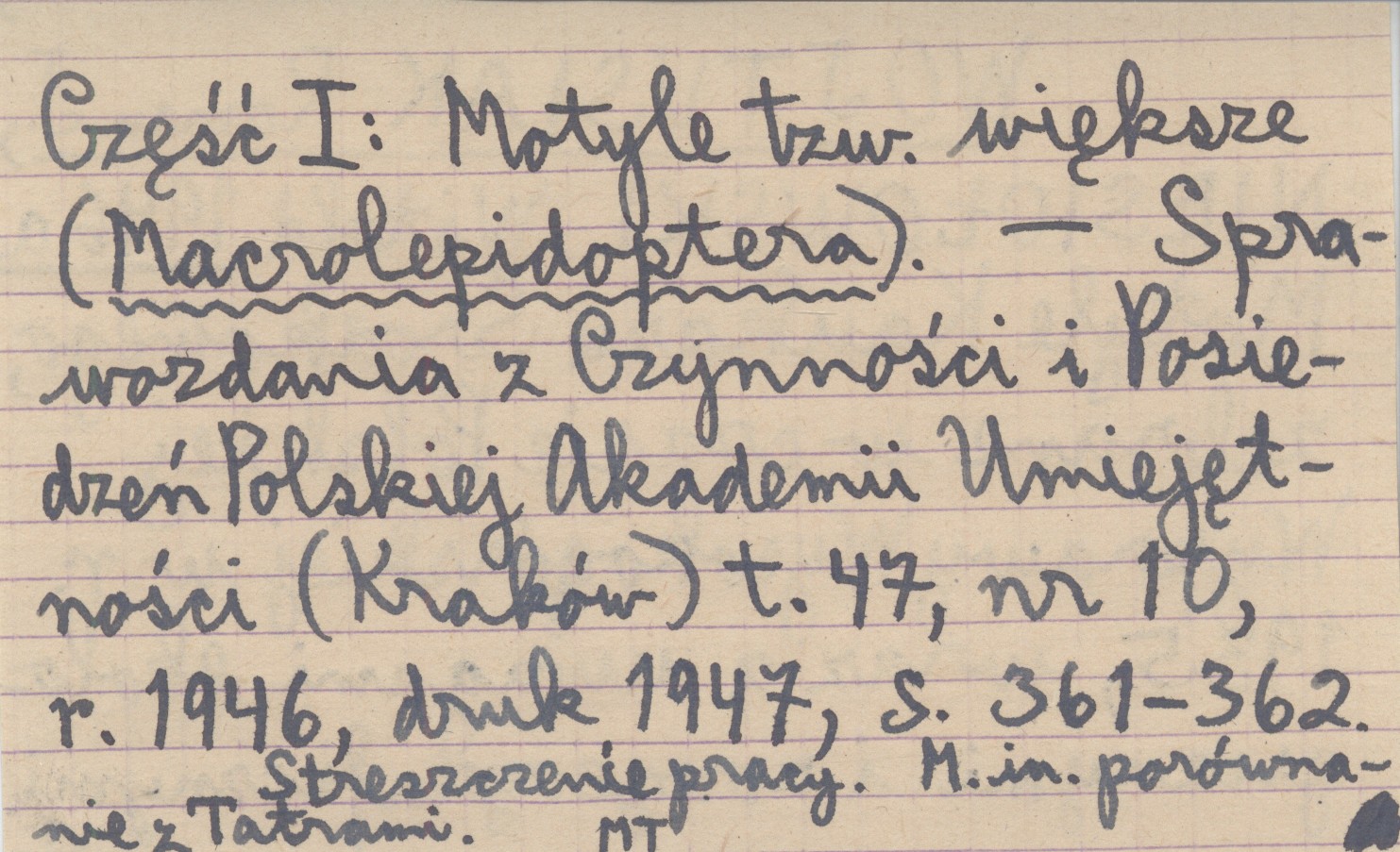 WOJTUSIAK Roman J. NIESIOŁOWSKI, Witold. ; 1946 a Motyle Kaukazu Środkowego, zebrane w czasie Polskiej Wyprawy Wysokogórskiej w r. 1935, wraz z uwagami ekologicznymi i zoogeograficznymi. Część I: Motyle tzw. większe (Macrolepidoptera).