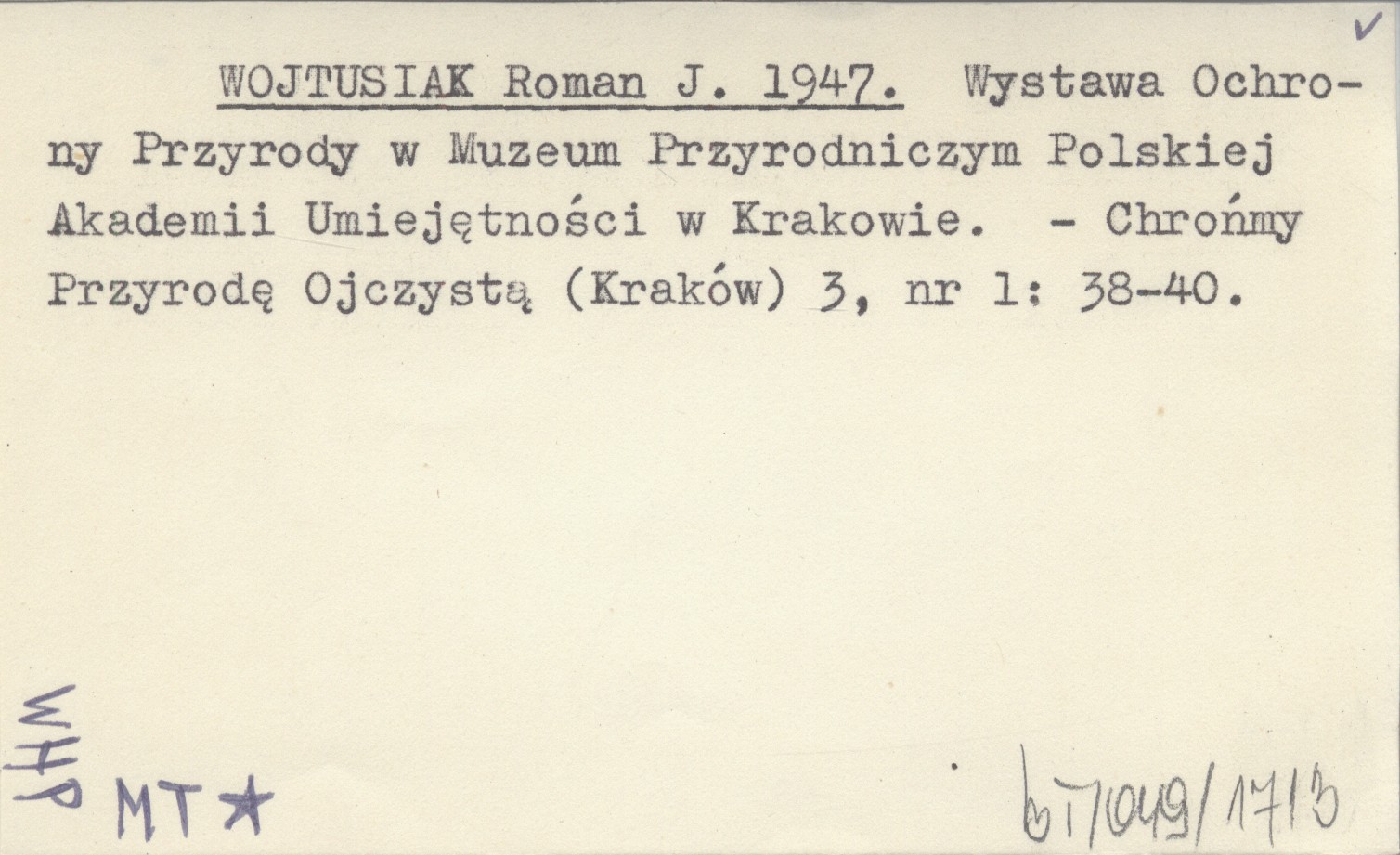 WOJTUSIAK Roman J. 1947 Wystawa Ochrony Przyrody w Muzeum Przyrodniczym Polskiej Akademii Umiejętności w Krakowie.