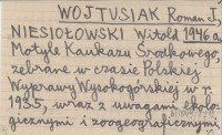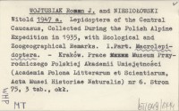 WOJTUSIAK Roman J. NIESIOŁOWSKI, Witold. ; 1946 a Motyle Kaukazu Środkowego, zebrane w czasie Polskiej Wyprawy Wysokogórskiej w r. 1935, wraz z uwagami ekologicznymi i zoogeograficznymi. Część I: Motyle tzw. większe (Macrolepidoptera).