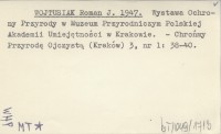 WOJTUSIAK Roman J. 1947 Wystawa Ochrony Przyrody w Muzeum Przyrodniczym Polskiej Akademii Umiejętności w Krakowie.